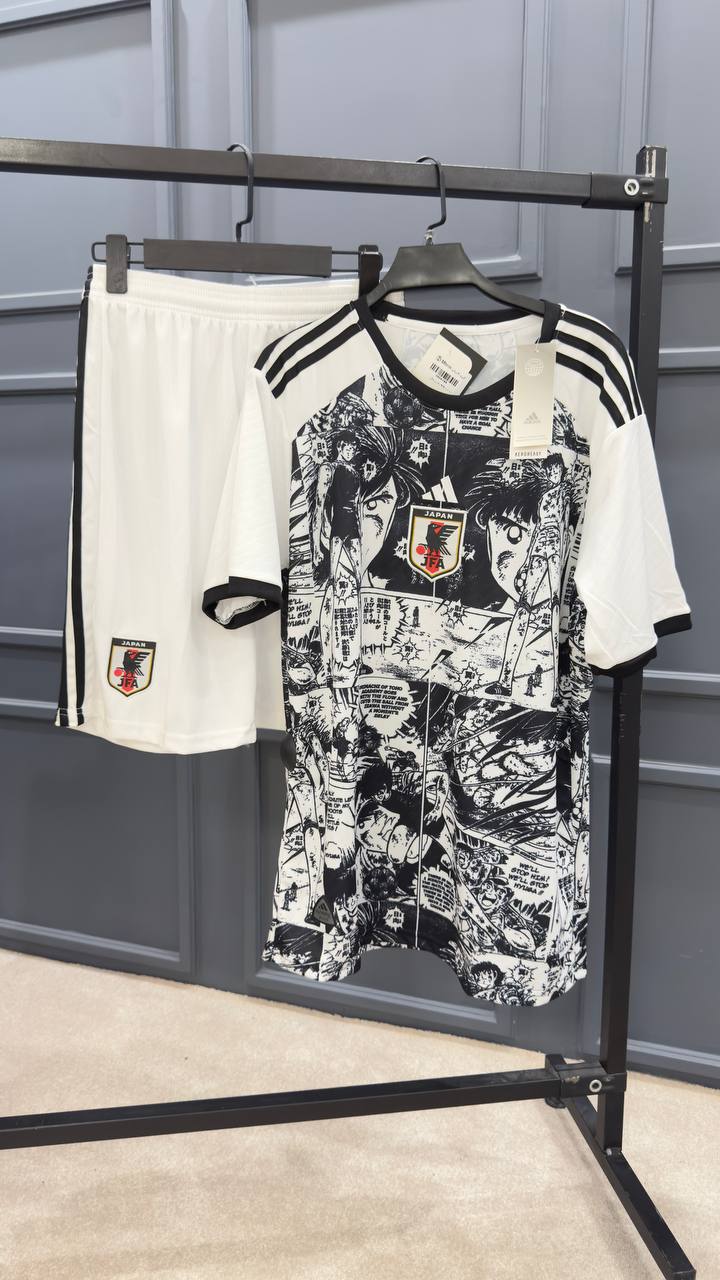 کیت طرفداری ژاپن شامل پیراهن، شورت و اکسسوری هواداری شیک برای حمایت از تیم ملی ژاپن در جام جهانی و مسابقات مهم فوتبال.